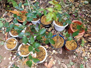 それを覚悟で 18本の苗を昨日ポット採取し 充分に散水。 一晩明けてポットケージを覗いて観たら、 実に青々と生き生きしているでは! 18本すべてが 真夏の太陽に向かってまっしぐらに 突き進む勢い。 やったー成功だ。 |