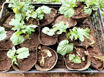 これで今夏のゴーヤーは 大豊作間違い無しと 胸をなでおろしたのだ。 しかし本日の天気予報は終日、 太陽ギラギラ。 朝、沢山水遣りをしても ポットそのものが小さいので すぐ乾いてしまうことに気づき、 透明のマルチシートを掛けた。 |