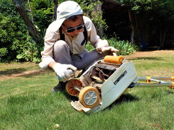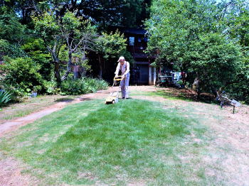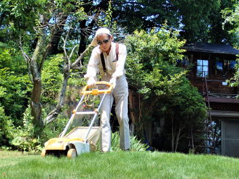 | 仕上げは芝刈りじゃ! 6月27日(火)曇 雨不足で伸びない芝だが刈ってやろうか そりゃ簡単さ。あんまりヤクがヤク立たずだったので、1日最大3回服用なんて無視して、3時間ごとに 痛み止めのロキソニンと鎮痙剤ミオリラークを呑み続けたのさ。 勿論夜中もむっくり起きて正確に3時間ごとに消化性潰瘍用剤グロリアミンと一緒にゴクリ。 そうしたらどうだい、今朝何ぞ、全く考えることも出来なかった腹筋が17回も出来たんだぜ。 そりゃ、おっかなびっくりで、やっぱ止めといた方がいいかなと思いつつ懼れ懼れ、 1回また1回と遂に17回まで続けられたって訳。 ヤクがヤクに立ったので嬉しくて勝利の祝いじゃ! |