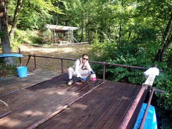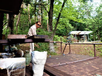 夏至のダイアモンドの元で蛍と共にログ改修工事する混沌仙人