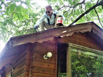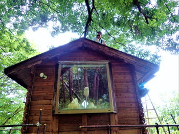 ![]() 出窓に森が映って!(屋根上の狂人か?) |
