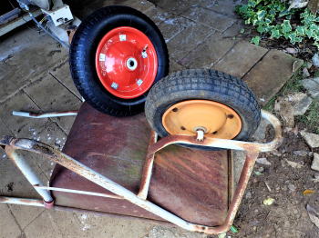 ![]() 大活躍した一輪車の修理不可 |