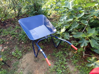 山荘活動で一輪車は欠かせない。 斜面にある4つの畑の 肥料置き場には、当然ながら、 車は入れない。 1袋20kgもある肥料を30袋も 運ぶとなると600kg。 前庭に荷下ろしした肥料を1袋ずつ 抱えて運んだら30回。 魔女の一撃どころか、数十撃を喰らい 腰が折れてしまう。 |