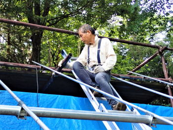 ![]() 屋根材を取り付ける |