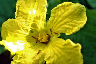 ![]() ゴーヤーに群がる蟻 |