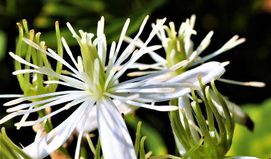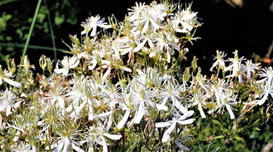夏との離別 烏滸がましくも混沌仙人を 名乗るからには、晩夏から初秋に 銀の光を放ち山荘を彩る≪仙人草≫を、 真っ先に山荘住人として HPに紹介せねば! と思いつつ 実は大昔に一度だけ載せ、 あとは横目でチラリと眺めては 観て観ぬふりをしてきた。 これには深い訳がある。 恥ずかしいながら仙人の無知そのものを 物語ることになるので、 今まではジロリ横目視しては 語るのを避けていた。 其の気になって一歩突っ込んで、 調べれば快刀乱麻を断つが如く 一瞬にして疑問は解け、 無知は知識へと、いとも簡単に 変容を遂げた筈なのだ。 開花時期の春と秋が縺れ、 同じ蔓性のスイカズラ科と キンポウゲ科が互いに絡み合い、 銀の光を放つ 吸葛と牡丹蔓と仙人草の3種が、 山荘建設以来20数年も 山荘の森や庭に蔓延っていたのだ。 その3種を無知なるが故に 区別出来なかったにも拘わらず、 澄ました顔してその時の気分次第で 「吸葛」になったり「仙人草」になったり。 落日を浴びて、あんまりにも 凌霄花が美しかったので、 序に仙人草も HPに載せてやろうと意気込み、 しみじみ観察し植物図鑑と見比べ、 気づいたのだ。 |