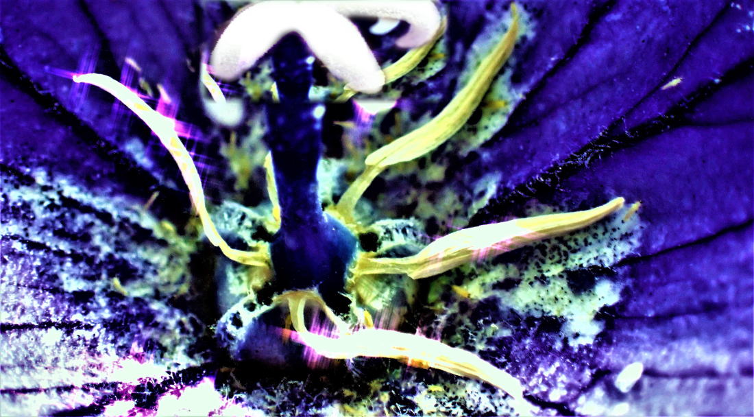 | 雌花の柱頭が開き妖艶に舞う雌花期の桔梗 雄性先塾で雌蕊は他の花の花粉しか受け入れない 花弁に閉ざされた小さな宇宙に男達と女が居た。 花弁が開き外界と通ずるや否や、待ちきれんとばかり男たちは無数の精子を放ち濡れた雌蕊に群がろうとする。 しかし女は開かず濡れもせず、花弁に棲む男達の精子の放たれるが儘を見下す。 やがて精子は放出され尽くし、萎びてヨレヨレになった雄蕊は小さな宇宙に黄色い屍を曝す。 それを見届けた女は微かな微笑みを浮かべ自ら開き、 ぬるりと捕獲の汁を滴らせ他の宇宙から飛来する花粉を待つ。 この小さな同じ宇宙の男どもの遺伝子を受け入れても、未来の時間に飛び出せないと桔梗女は知っているのだ。 その逆、つまり雌性先熟を行う女も居る。 その女の多くは最初雌でいて、生殖後に雄に性転換し更に子孫繁栄に励む。 一夫多妻の繁殖形態を持つ動物種や、風媒花の植物種は雌が先ず発情し雄を受け入れやがて自ら雄になる。 異なる宇宙の遺伝子を求める事こそが未来を得る唯一の術であると、生命には刷り込まれているのだ。 なんぞと独り言ちながら、仙人は桔梗の花芯を見詰めるのであった。 |