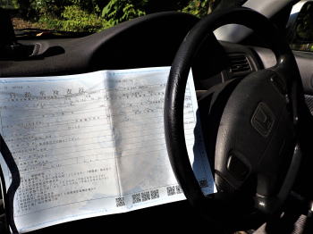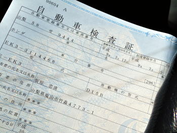 ![]() ダッシュボードから出て来た検査証 |