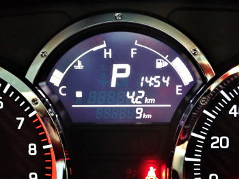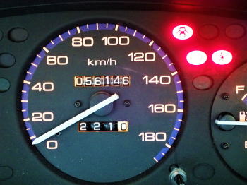 あれ、凄ーく 柔らかくて寝心地抜群! 脚先のエンジンからフェリオの 動脈血のパルスが 伝わって来る。 仙人の動脈血とアンサンブルし 天空へ飛び出しそう! ディーラーから山荘まで4.2kmを 示すトリップメーター。 オドメーターは9kmを表示してるので メーカの検査走行距離は 9-4.2=4.8km。 うーん、眩しいピカピカの新車だ。 さて生い先短い仙人は このオドメーターを何処まで伸ばすか! 中央右は燃料計、 左はラジエーターの水温計で エンジンのオーバーヒートをチェック。 右側は速度計で 左はエンジンの総回転数を表示する タコメーター。 |