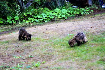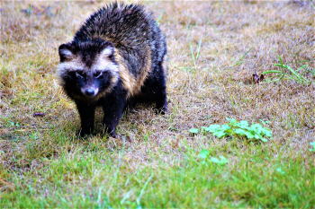 そうだったのか! 台風が続けてやって来て 山荘の冬駐車場が、 川になって、狸の巣は水浸し。 でもって臆病で姿を見せぬ狸め、 夜行性であることも忘れて のこのこ庭に出て来たんだな! |