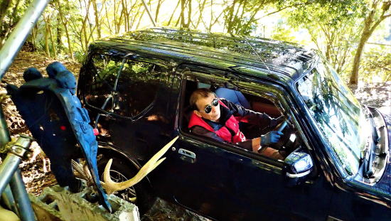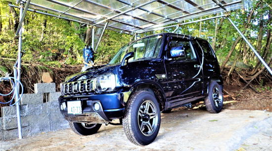 | しかしこいつは違う。 軽なので小さくて小回りが利くし、 扱いやすいと 思っていたが大間違い。 プレッシャーを感じても不思議ではない。 その上、四駆と四駆Lに 駆動を切り替えられるので 試しに切り替えて みたら何とも重厚で、 これぞ車だと唸りたくなる気分。 車高が高く道路までの距離が あるのでボンネットの左に アドバイスミラーが付いている。 ミラーで側溝への脱輪や 側壁への接触を避けられるが、 車高が高いとより大きく感じ 車体感覚が掴み難い。 |