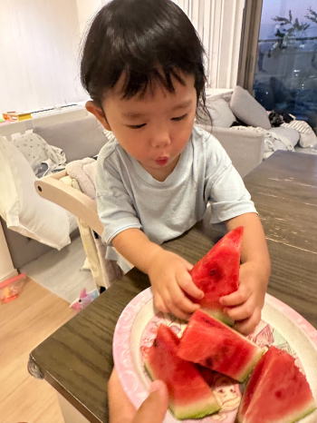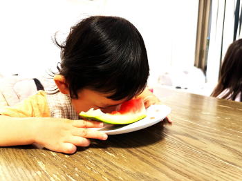 | 2度目の 割れて届いた西瓜 そうなんだ!クール便で当日便にし、 更に事前連絡しておくべきだった! さて実はそこにこそ仙人の深い想いが 込められているんだ。 スイカに武者ぶりつき歓ぶ幼子・ 桃、櫻の画像から、それを撮り続ける 父親の悦びも伝わり、仙人の胸をうった。 |