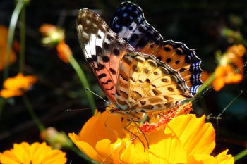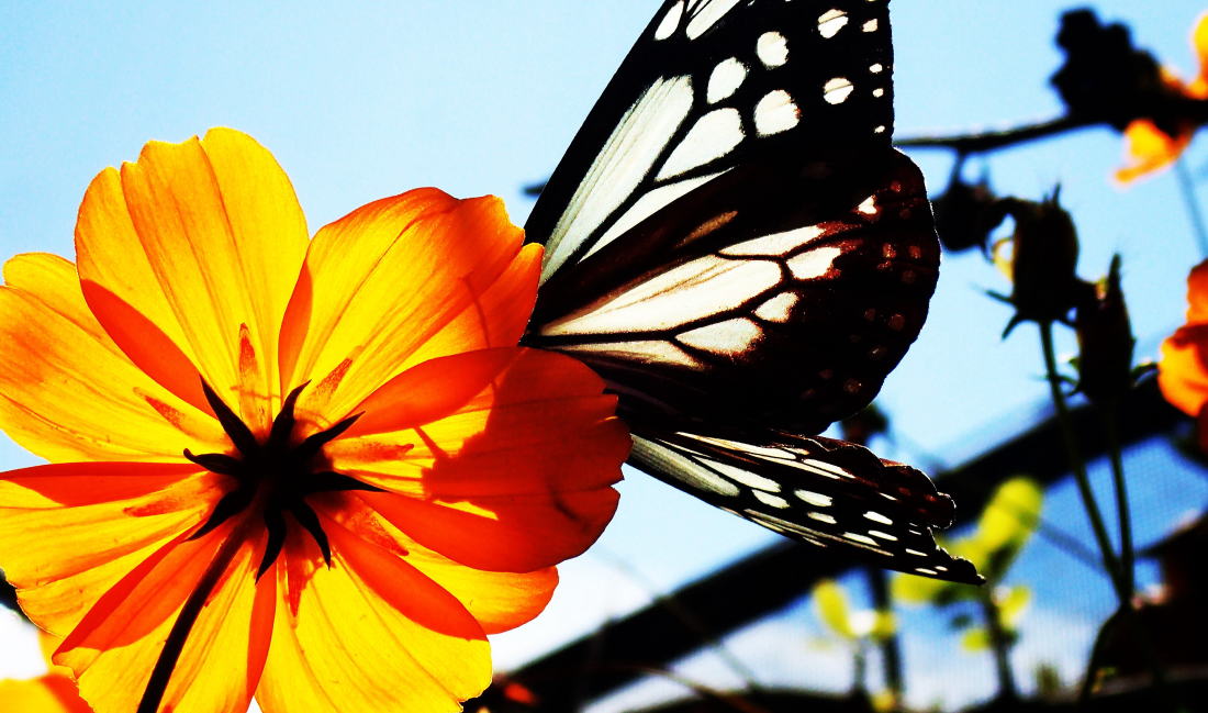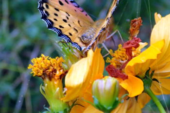 ![]() 褄黒豹紋の雄と黄秋桜 |