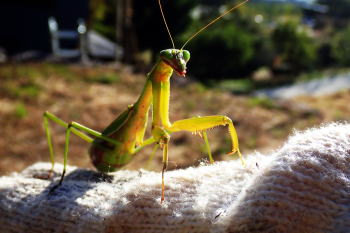 ![]() 蟷螂なんぞ仙人の手袋に乗って! |