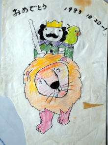 読み応えありました。 先に(HP)を読んだ広江さんは「宇宙とか色々出てくるからさー」と、 読み解こうとしてずいぶん頑張ってました。 ところで「大物」はいくらなんでも言い過ぎです。 「髭の40歳」は70年代のロックスター風味で、 「あんな格好で学校に行って授業してたのー !?」と、広江さんが感激していました。 ホッツェンプロッツやエルマーも懐かしいです。 しかしうちは誕生日を祝うなんてことはなかったなぁ。 そんな思い出もなく、本当にあっという間に時間は過ぎて子育ても終わってしまいました(のハズ)。 色々やり残したことや後悔もある時間でしたが、これから少しでも挽回を諮っていきたいものです。 (アップルの大物返上し格下げした中者返メール) |