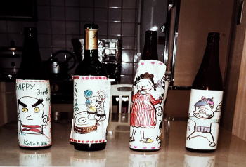 若かりし仙人の誕生日には、絵を描いてはビール瓶に貼り付けて 子供たちは特製ビールで祝ってくれた! どうも今は通過儀礼が発動され、オヤジの存在そのものは消去されてしまったらしい。 めでたしめでたし! これで仙人は、最後のイニシエーションを嬉々として迎えることが出来るぜ! |
