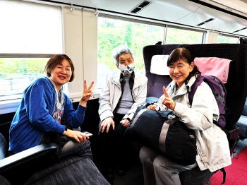 ![]() 帰路は全員にグリーン車を 奮発してくれた栗田陽介君! |