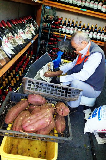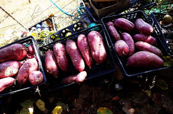 ![]() 掘り出した芋はそのまま日光浴に |