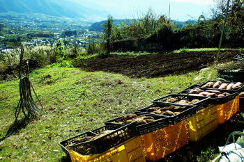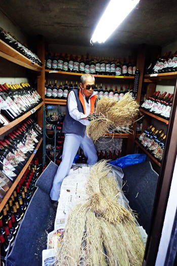 | 藁と籾殻が軽トラに乗って里から届けられた! こいつに包んでおけば来春まで追熟して甘く保存出来るさと広瀬さんは語る |