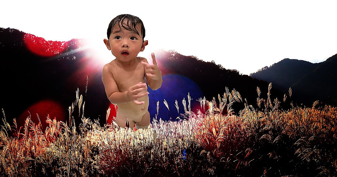 | ほらっ、人差し指が光を食べて僕にずんずん入って来る! すすき野原は僕の大好きな魔法のお風呂場なんだ! |