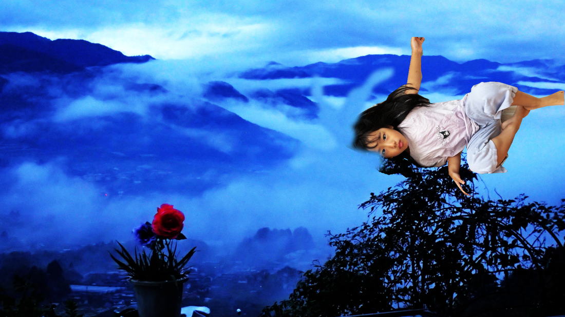 | 仙人のおうちは雲の上にあるんだ! そうだよ、紅いバラが魔法のボタンで雲に乗って何処にでも行けるんだよ! |