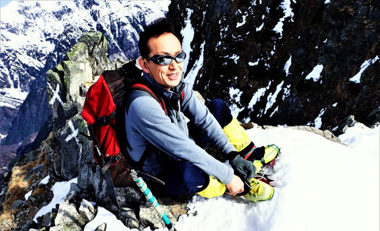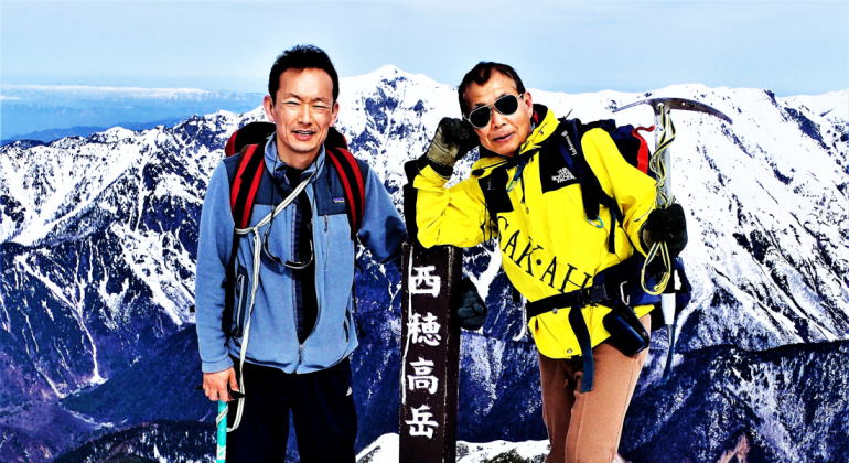 ![]() 8年前。つまり仙人が73歳、陽介君が52歳か? (仙人の氷壁登攀を撮影してくれた陽介君) |