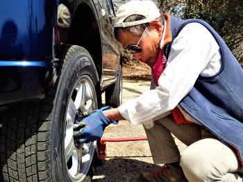 固過ぎると緩める時に難儀するし、緩すぎると 外れる恐れありと懸念したのだ。 ところがだ、驚いたことに1輪5本×4輪=20本のボルトの内、 な、ナ、何と4本ものボルトが緩んでいたのだ。 4本と言えば全ボルトの20%、 つまり仙人は20%死んだのだ。 |