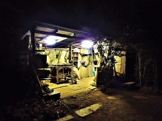 先週発注して置いた アルミナセメントが届いたので 窯下にシートを敷いて潜り込み、作業開始。 アルミナセメントをバーナーと 火口受の隙間に押し込み、 スプーンとバターナイフを水に付けて 鏝として使い、しっかり塗り込む。 |