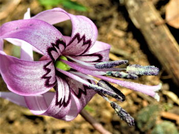 森はすっかり伐り払われ黒い不気味なパネルに 覆い尽くされてしまった。 以来、小倉山からも上条山からも カタクリは姿を消してしまったのだ。 そのカタクリが十数株も昼下がりの陽射しを浴び、 しょんぼり泣きそうな顔して咲いているでは! きっと乱開発された森の生き残りなのだろう。 この地で、もっともっと仲間を増やして、 新たなカタクリの森になっておくれ! |