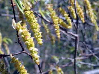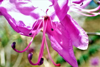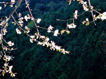 | 動脈を疾走する赤血球の陰謀 4月10日(火)晴 この上なく美しく咲き誇りながら、誰にも観られずひっそりと佇む赤紫の花弁が呼ぶ。 幽し雌蕊の匂いが春風に乗って東の森から流れて来る。 バイクに乗って春風に向かって東の森に突き進む。最初に迎えてくれたのは花簪の大きな樹。 上条谷を渡る手前にこんな大きな花簪があっただなんて、24年間も通い続けたのに知らなかった。 つまり花簪が咲き乱れるこの時期に、上条の森を訪れたことが無かったということなのだ。 春の訪れを告げる花の1つとして花簪を忘れる訳にはいかない。 |