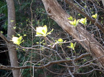 | 読書中の「90歳何がめでたい」、 「神々の乱心」を放り出し、 山並みの多様な命のグラデーションに ただ唯ポカーンと見とれた。 先週は緑の芽が小さすぎて 眠りから覚めようかどうしようか 戸惑っているような。 ≪うーん、ちょっと未だ早いかな、 もう少し寝ているか!≫ てな声が聴こえてきそうな。 |