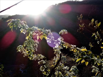 ![]() 夜明けの白い桜と桃 |