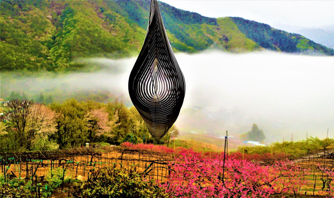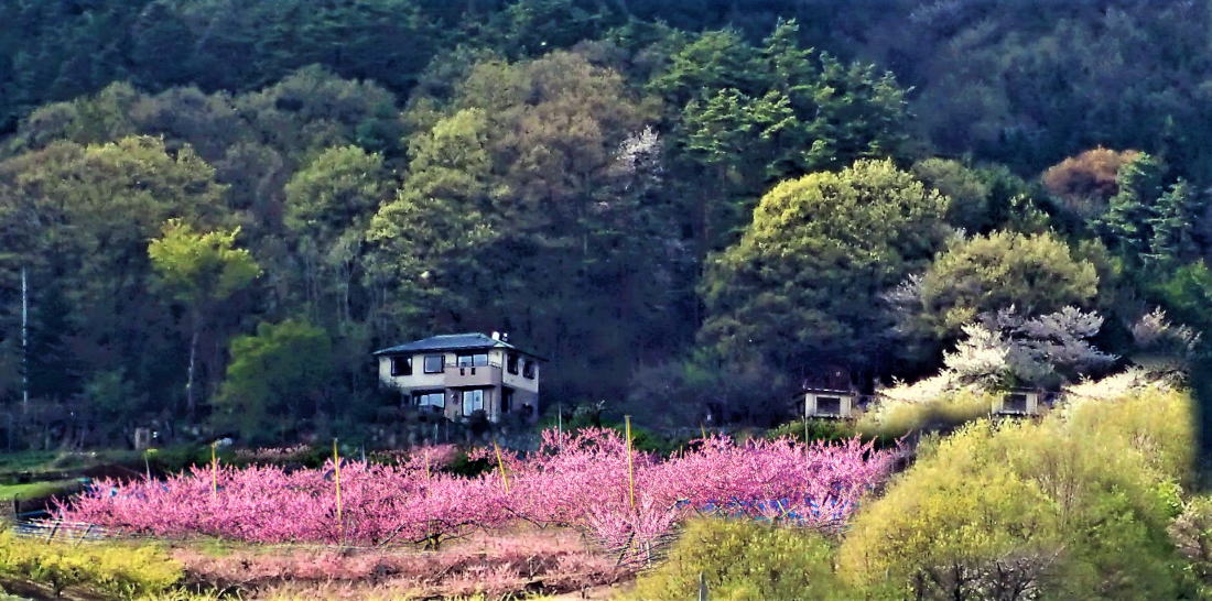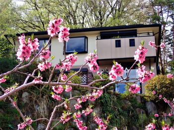 ![]() 語らう山荘と桃 |