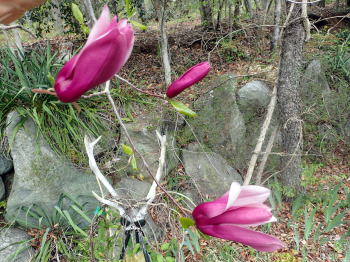![]() 木蓮とジョンクレマチス (前庭) |