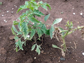 ![]() 右のトマトが枯れ再度移植 (葡萄畑) |