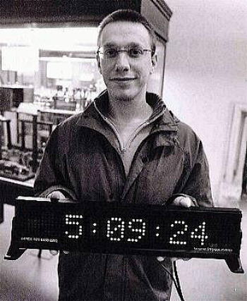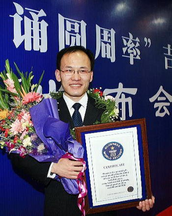 さてネットサーフィンを続けているが、 どうしてもダニエルの 3000桁直前の誤りが見つからない。 その代わり1位の ル・チャオの記録が見つかった。 6万7890桁まで 24時間4秒掛けて暗唱し、 その次の6万7891桁目の 「0」を「5」と間違えてしまったと云う。 |