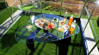 ![]() 硝子テーブルはどうだい! |