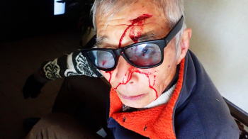 ![]() 8年前。つまり仙人が73歳、陽介君が52歳か? (仙人の氷壁登攀を撮影してくれた陽介君) |