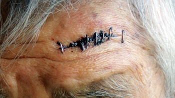 | 仙人が墜落したのは延長したこの芝生工事中なのか! 2月1日(日)晴 ぷちクレール延長芝生 出血が止まらないので救急医療を受けねばならぬが、救急車119よりも自分の車で駆けつけた方が早いし帰りも都合がいい。 しかし自分の車で行くと救急扱いを受けられず待たされるかもと塩山病院に相談。 今直ぐの診察は無理なのでと浅利脳外科クリニックを紹介してもらう。 クリニックに連絡すると脳外科だけでは対応出来ないので他を当ってくれとのこと。出血は止まらず、これ以上グズグズしてるとヤバイ! 即車に乗って塩山病院に駆けつける。 脳外科の渡邊徳晶Dr見事なまでにやる気の無い対応で、それじゃホチキスで縫いますと麻酔もなしで、 いきなりパチンぱちんと左額に7発針を打込む。 痛えの何の思わずイテーと叫ぶ。1週間後に抜くから来て下さい。 序にx線とCTスキャンをとって骨に異状なしを確認し念の為と、 左脛、右膝、左腕左太腿の打撲を観て貰うため整形外科の岩窪武Drに回される。 待っている間に左膝辺りのズボンの内側から血が流れ出し、待合室の廊下を赤く染める。 看護師が血に気付き車椅子でベッドのある病室へ仙人を搬送。 それから待たされること更に2時間、血の流れがタイツの圧迫でやっと少なくなったころ診察。 うん、こりゃ複雑な裂傷なので抜糸は再来週になるなと整形外科の岩窪武Dr。 この小さな人工芝の庭でぷちクレールの工事は完了! 81歳の老劣化の極みにあるポンコツ仙人が、僅かこれっぽっちの代償でぷちクレールの工事が完成したなんて奇跡じゃや! 独りほくそ笑む仙人であった! |