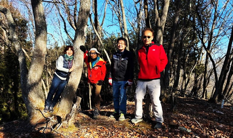 | 忍者のように颯爽と姿を消すのですぐに見失う この時は紅一点でよかったと思った。熊よけのスプレーガンと笛を備えて出発だ。 実は今回の訪問前に宮島に行き、弥山という岩山を登り降りしたのが功をなし、筋肉がついたのか意外に辛くなく登れてしまった。 あの時はしばらく脹脛が破裂するほど痛かった。こんなのはもう最後だ! と、トイレを我慢しながら降りたものだが、これからは自分との戦いかもしれない。 隊長を見ると80歳にも関わらず、しなやかな肉体と颯爽とした所作。負けてなるものか!と一瞬思う。 前回は村上さんと楽しくおしゃべりしながら散策した登りであったが、今回は正月三日。家族団欒の時間ということで彼女は不在。 私にとっては置いてけぼりにならないよう割と必死に隊長の跡を追っていた。しかし忍者のように颯爽と姿を消すのですぐに見失う。 一緒に山を登るとその人なりがわかるような気がする。 陽介さんは観察力に優れているので、登り始めに私のストックの使い方にアドバイスを「さりげなく」教えてくれた。 それにいつも一番後ろを歩いてくれる。こういう人を夫に持った私は見る目があった。いや、幸せ者である。 大塚さんが滑って落ちた!落ち葉が積もった道はもうトレイルではない。 もともと細いトレイルがさらに細くなり丸みを帯びた崖っぷち。マジでここを通るのかと思った場所で落ちた。 背中にチェーンソーを背負っているので、あれよあれよというまに滑り落ちた。明日は我が身ではなく、次は我が身。 落ちた場所から這い上がるのは相当大変である。落ちたらどこへ行くのかわからない。 山での遭難は怖い。まあそんなに大袈裟に落ちてはいないので、なんとか応援して這い上がってもらった。 そんなこんなで隊長を見失い、3人でGPSを基に足を運ぶ。一度景色を見失うと全部同じに見えてしまう。 この景色は見ていない、見た…こっちだ、あっちだ、といいながらなんとか猛獣避けのゲートが見えてきた。 そうしたら陽介さんが「これは違うからまた元に戻った方がいいと思う」、という。絶対戻るのはイヤだ。既に3時過ぎ。 森はあっという間に暗くなる。また森に入って迷ったら遭難してしまう可能性もある。 |