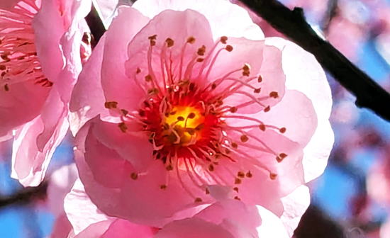 | ヤッホー春が呼んでるぜ! 3月1日(火)晴 奥庭の白梅の後に紅梅が一輪だけ咲いた |